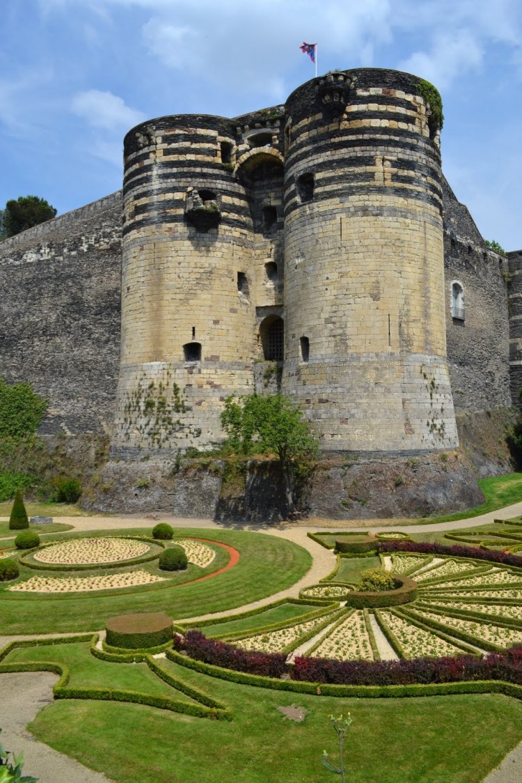Angers is beautiful old city and it’s star attraction is the Chateau du Angers which was a military fort and residence. Between the outer wall and the fort, where we imagine at some point was a moat, there are now beautifully landscaped gardens. Inside the fort walls, is a courtyard and there is a residence and a chapel as well. You can climb up to the fort walls and there are gardens up there and stunning views of the city around, its at least 100 feet above the river and adjoining towns.